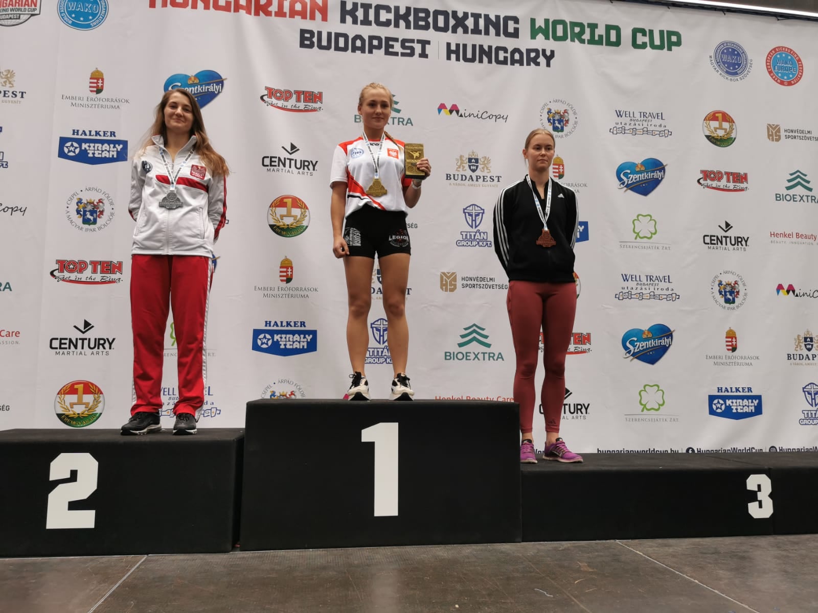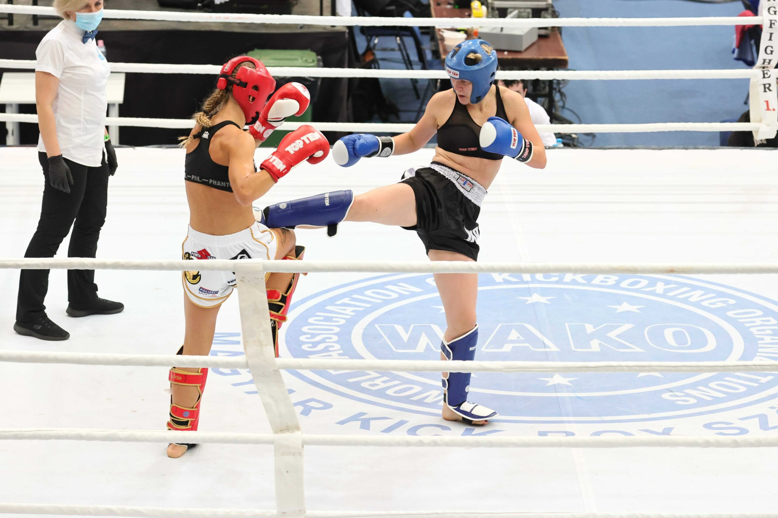 Jigotain Essi Honkonen (kuvassa vasemmalla) voitti K1 56-kiloisten puolivälieräottelussaan Unkarin Diána Friczin kaikin tuomariäänin. Essi piti ottelun tyylilleen uskollisesti liikkeessä ja napsi osumia etenkin alapotkuillaan. Välierissä Honkonen kävi tiukan taiston 2019 nuorten EM-ykköstä Puolan Martyna Kierczynskaa vastaan, mutta joutui taipumaan niukkaan pistetappioon. Kierczynska vei sarjan lopulta nimiinsä päihittämällä loppuottelussa hajaäänin maannaisensa Ewa Pietrzykowskan, joka on sarjan hallitseva maailmanmestari.