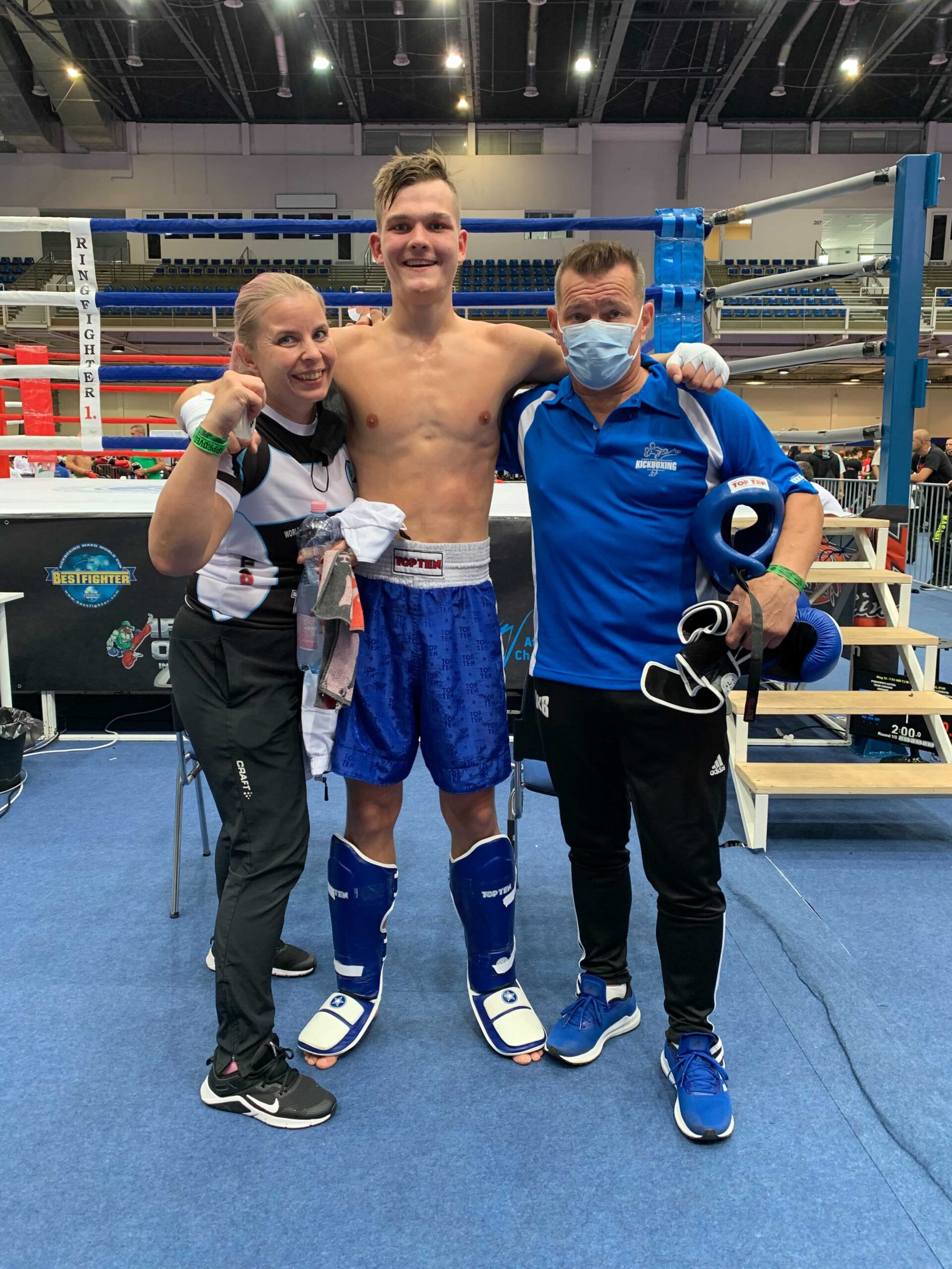Espoon Kehähaiden Tatu Maunu otti Full Contactin 63,5-kiloisten puolivälierissä mittaa hallitsevasta Euroopanmestarista, Saksan Eugen Illistä. Kokenut maailmanlistan ranking-ykkönen vei täysiaikaisen ottelun ennakko-odotusten mukaisesti nimiinsä, mutta vain muutaman osumapisteen marginaalilla. Eugen voitti koko sarjan kukistamalla välierissä Puolan Sebastian Samiłan ja loppuottelussa Uzbekistanin Kobiljon Rakhimovin, käyttäen molempia myös luvunlaskuissa.