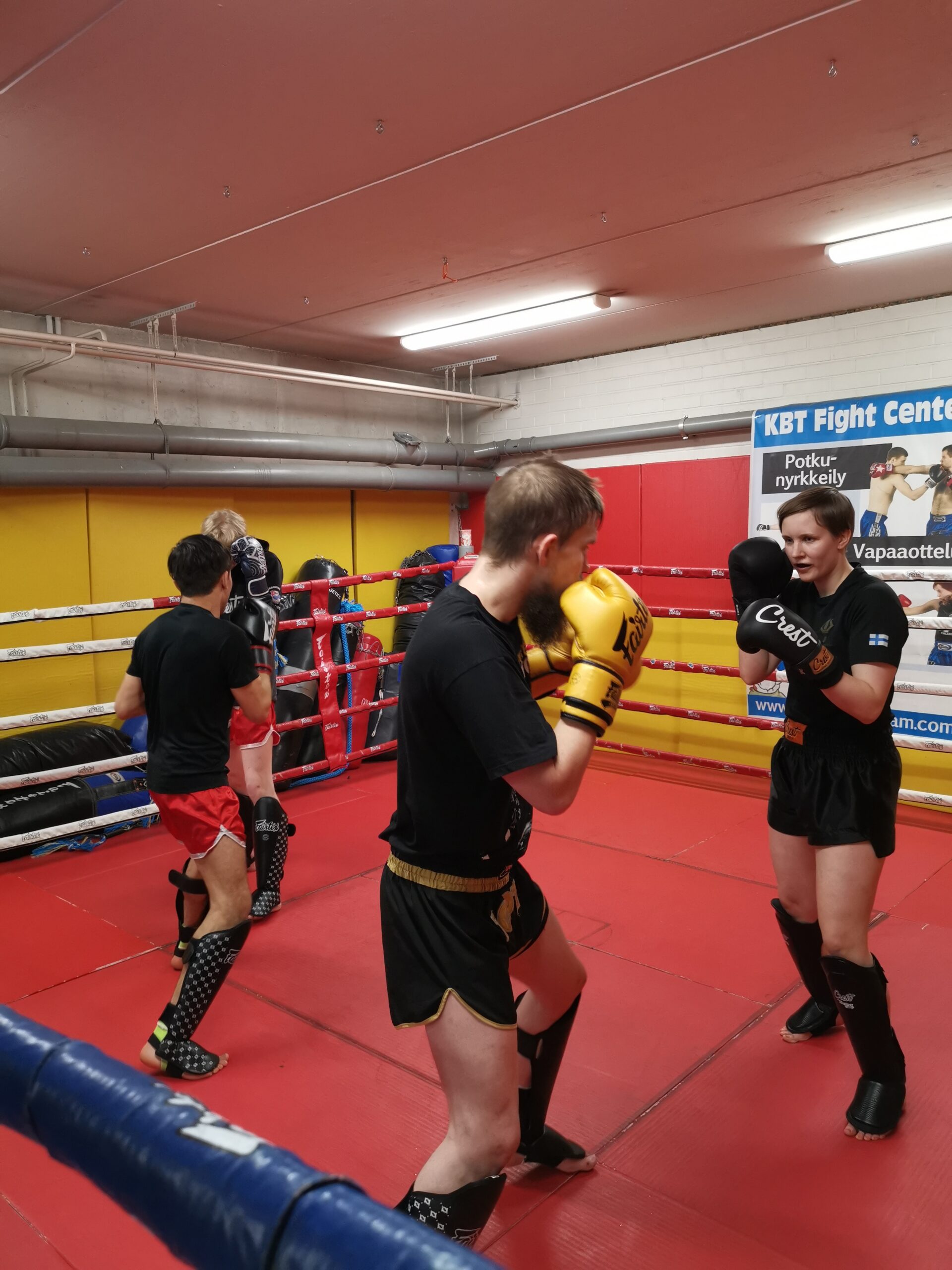– Vaikka tehtiin paljon perustekniikkaa, kaikki olivat sitä mieltä, että niissäkin tuli paljon uutta. Pareja vaihtaessa pääsi mukavasti testaamaan omaa osaamistaan eri tasoisten potkunyrkkeilijöiden kanssa.