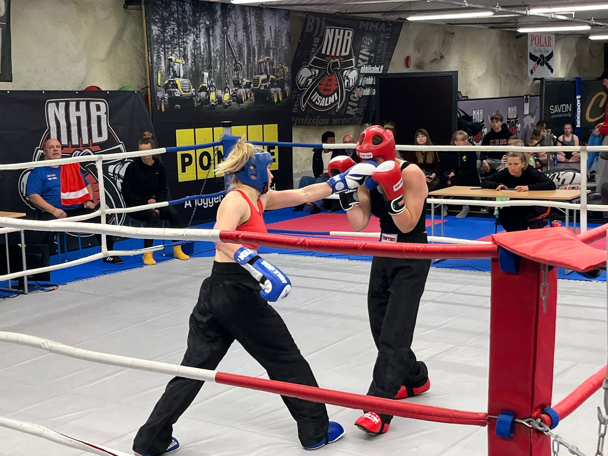 – Neljäs ottelu viimeistään herätti yleisön, kun Full contact -ottelussa vastakkain olivat iisalmelaisten rakastama MMA Seinäjoen Jenna Mäntylä ja NHB Iisalmen Heini Kärkkäinen. Ottelussa mentiin Mäntylän komennossa kaksi ensimmäistä erää, ja yleisön hurjasti kannustama Kärkkäinen onnistui kääntämään ottelun nimiinsä aivan viime sekunneilla hajaäänituomiolla. Kärkkäinen myös valittiin kilpailun parhaaksi naisottelijaksi esityksensä perusteella, kertoo järjestävän seuran Matti Kokkonen.