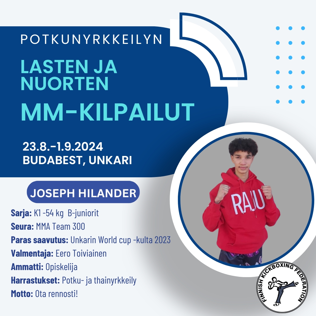 Joseph edustaa seuratasolla MMA Team 300:a.Hän ottelee K1-ottelumuodossa B-junioreiden 54 kilon sarjassa. Simon seura on Järvenpään Kehäkarhut ja sarja FC -71 kg A-juniorit.