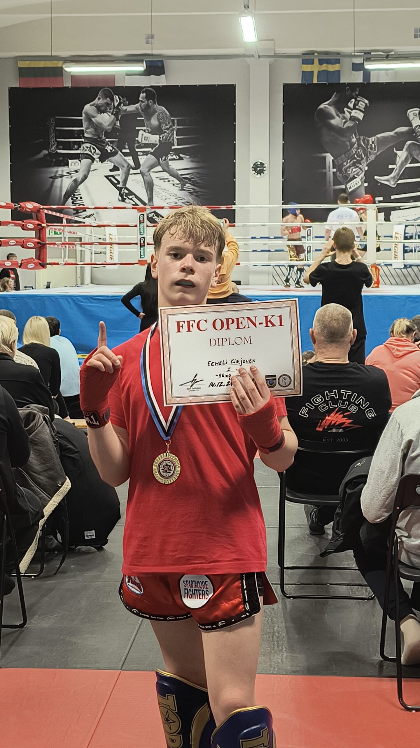 Spartacore Fightersin Eemeli Kirjonen eteni FFC Openissa arvonnan kautta suoraan K1-ottelumuodossa alle 15-vuotiaiden -56 kg sarjan finaaliin, jossa hän kohtasi Viron Fidkevich Rostislavin. Eemeli voitti ottelun pistein 3-0