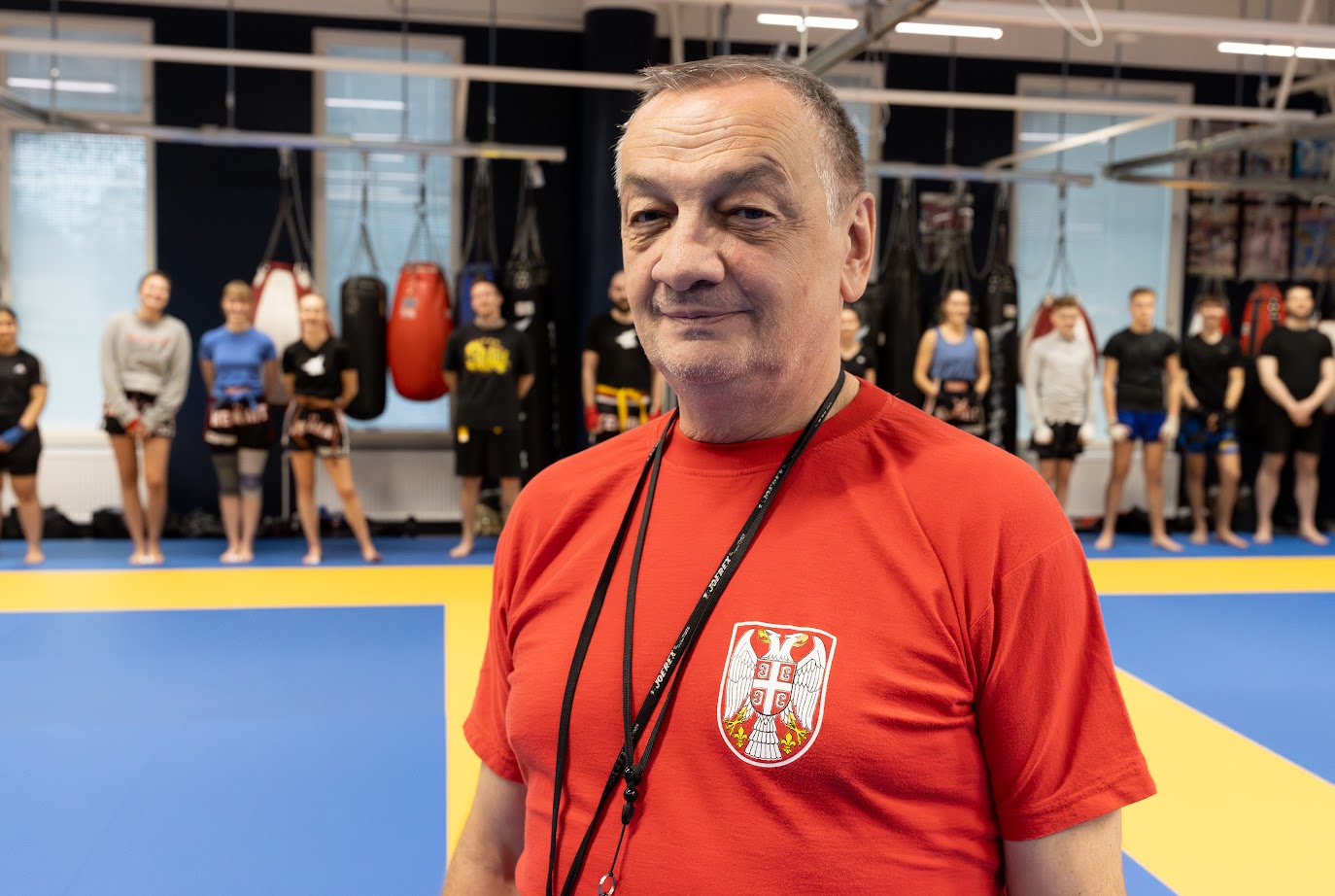 Miodrag Jotic luovutti talvileirillä Suomen Potkunyrkkeilyliiton perustajajäsenelle ja liiton puheenjohtajalle Petteri Maunulle serbialaisten tunnustuksen potkunyrkkeilyn kehittämisen eteen tehdystä työstä.