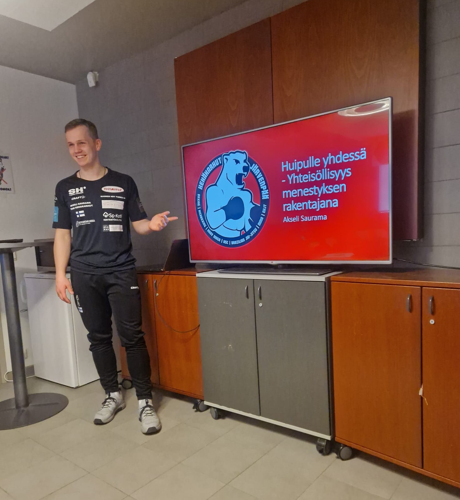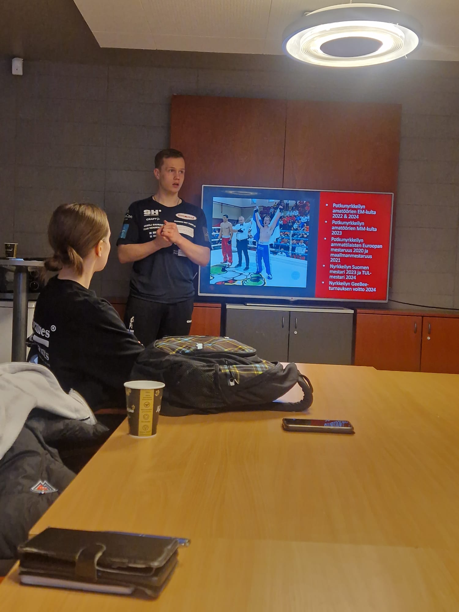 Harjoitussalilla tutustuttiin peruskuntokauden voimaharjoitteluun, kilpailukauden taktiikkaharjoitukseen sekä potkunyrkkeilijän kestävyystestiin.