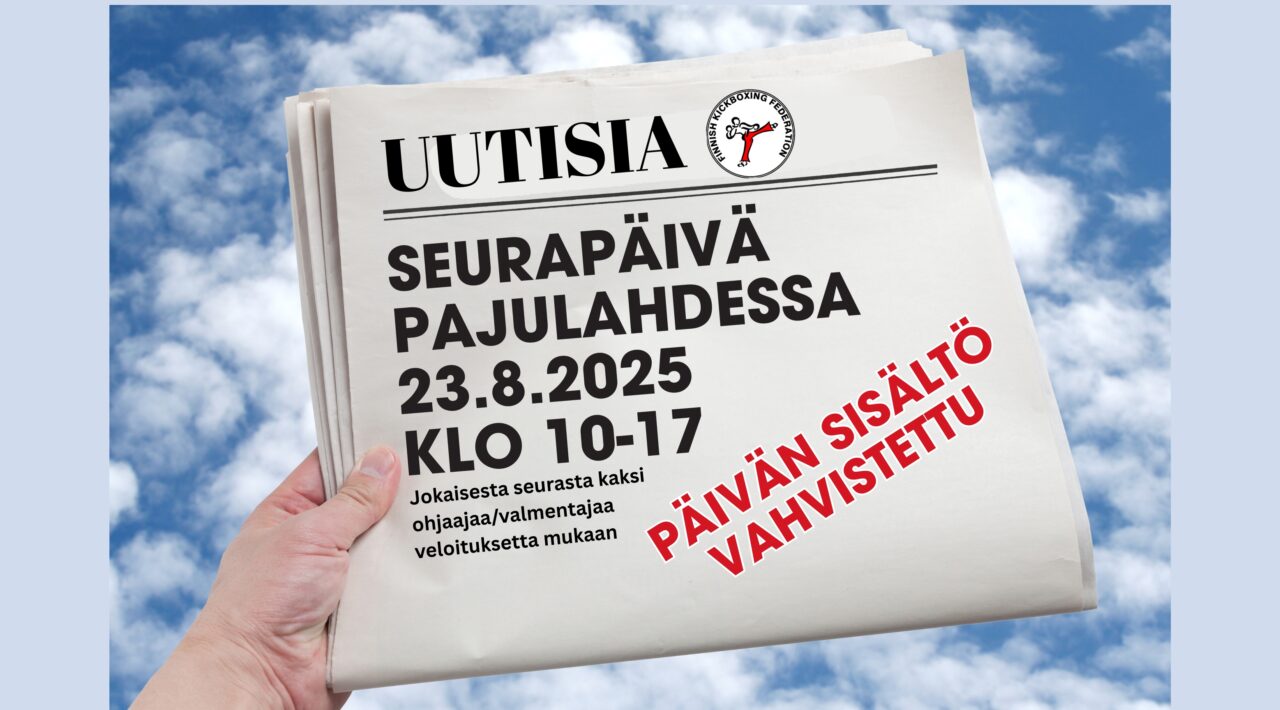 Suomen Potkunyrkkeilyliiton seurapäivä pidetään lauantaina 23.8. Pajulahden Urheiluopistolla Nastolassa.