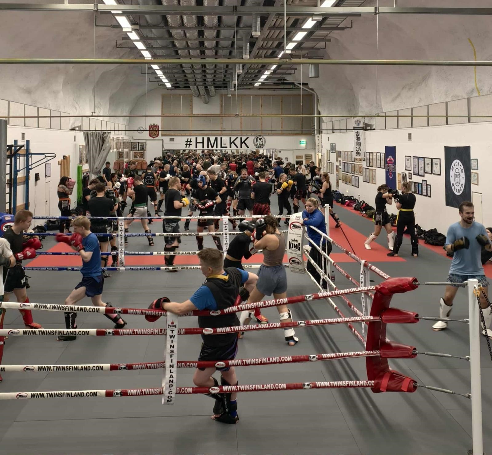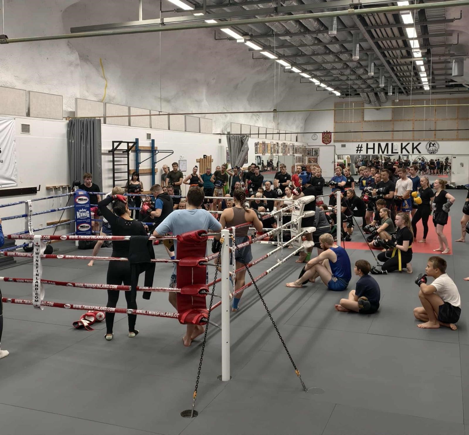 Potkunyrkkeilyliiton valtakunnallinen kesäleiri keräsi Hämeenlinnan Kamppailukeskuksen harjoitustila Luolaan lähes sata innokasta potkunyrkkeilijää.