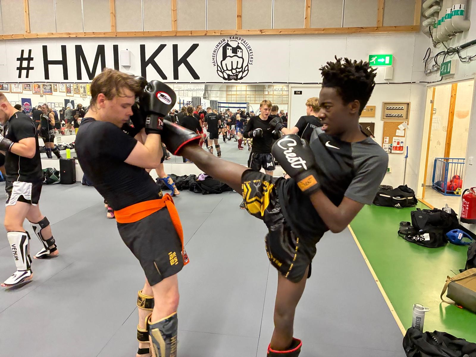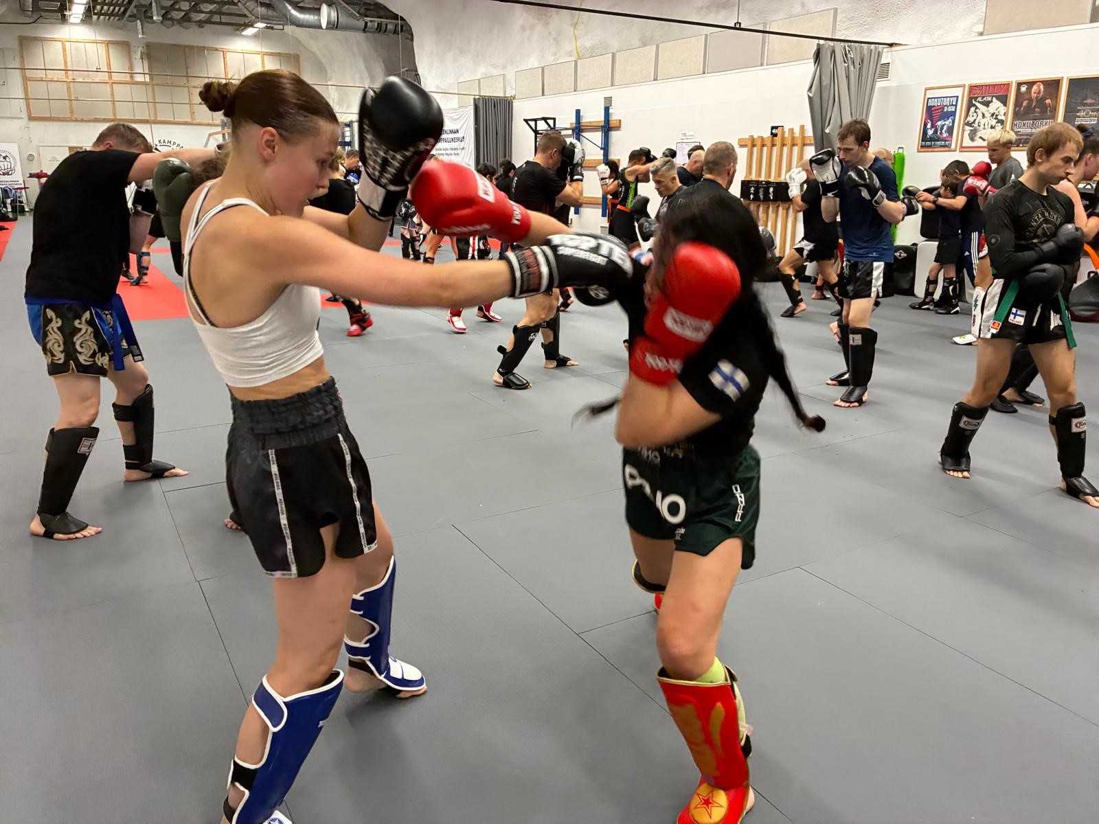Kolmen päivän aikana perehdyttiin potkunyrkkeilyn saloihin Leif Steniuksen, Petteri Maunun ja Sandra Roosin johdolla.