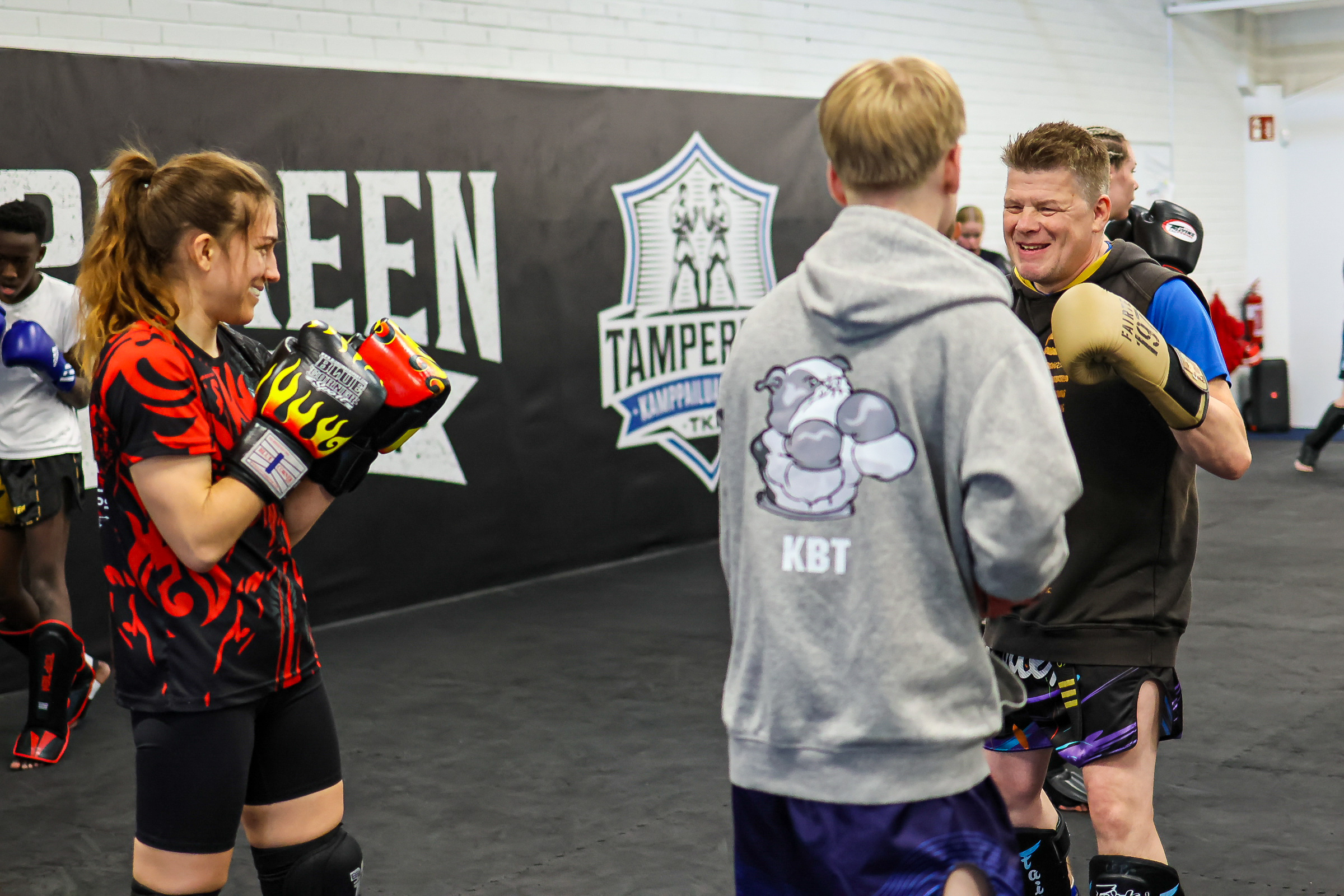 – Leirillä keskityttiin vastahyökkäyksiin, ärsykkeen antoon, hyökkäyksen keskeytykseen sekä monipuolisiin vaihtoehtoihin keskeyttää vastustajan suora hyökkäys. Omina hyökkäyksinä harjoiteltiin muun muassa niin sanottua japskipotkua eri korkeuksille, takapotkua, kääntölyöntiä, upparia sekä etu-takasuoraa, kertoo Stenius.
